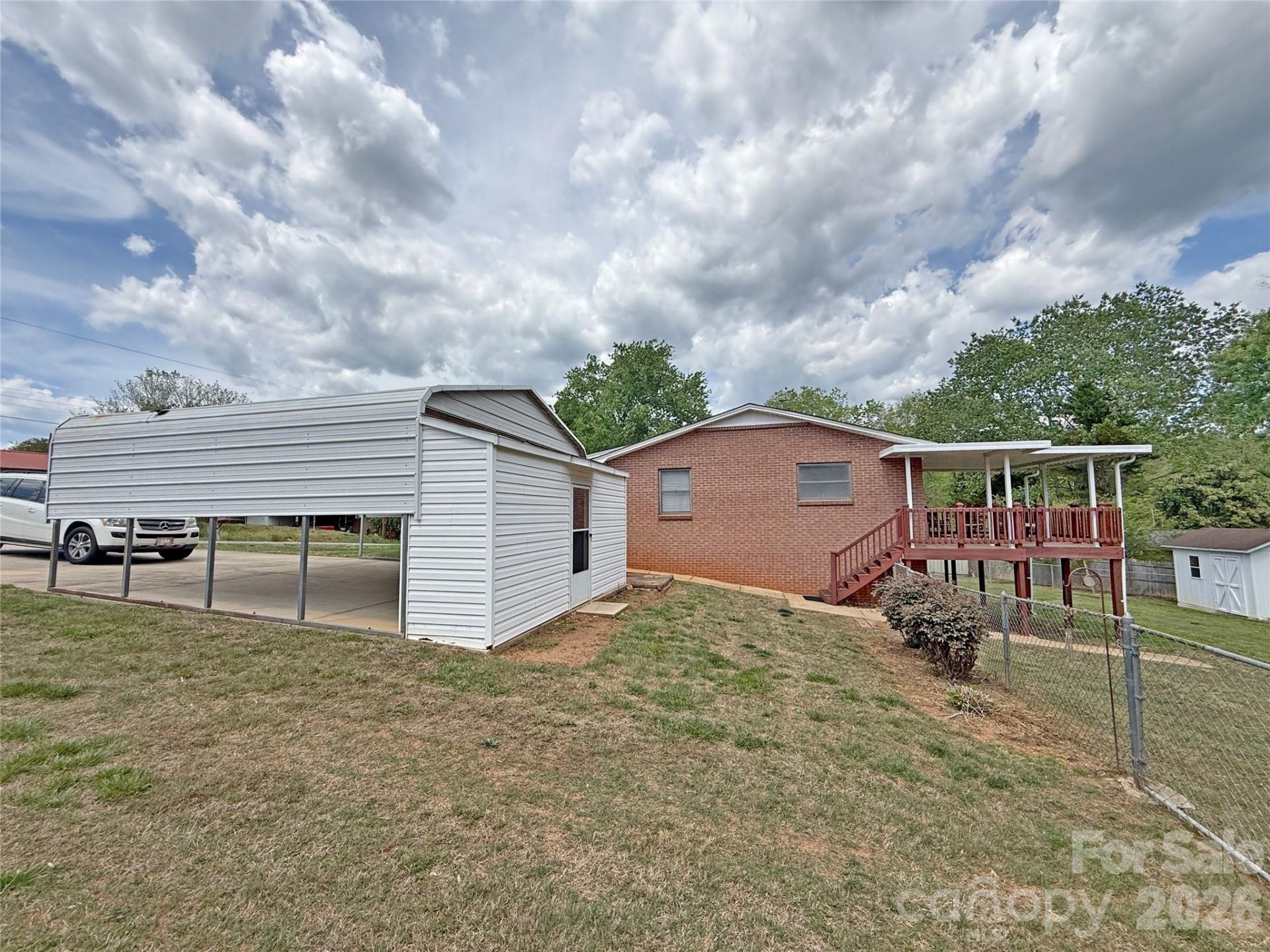 Charming one-owner, all-brick home built in 1960 and conveniently located just minutes from the Hickory Municipal Airport, Hwy 321, and I-40. This well-maintained property offers classic character with thoughtful updates throughout.Originally a 2-bedroom, 1-bath layout, one bedroom was later converted to provide stair access to the full unfinished basement and now serves well as a den or dining room. The home features beautiful original hardwood floors in the living room, hallway, and bedrooms, plus chair rail detail along the hall.The kitchen includes new LVP flooring, updated cabinet knobs, a new refrigerator, and a smooth-top range. (No dishwasher.) The full bath offers vinyl flooring, a tub/shower combination, a single vanity, and a large mirrored medicine cabinet.Bedroom #1 includes two closets, a ceiling fan, and a mounted TV that will remain. Bedroom #2 has fresh paint and a ceiling fan.The full unfinished basement provides excellent storage and workspace potential, with perimeter French drains, built-in shelving, and a gas wall heater. Washer and dryer will remain and are straight-piped to the backyard line, consistent with many homes in this neighborhood. (Freezer does not convey.) A covered basement-level patio adds additional outdoor utility.Outdoor living spaces include a 13' x 14' covered back porch and a 4.8' x 17' covered front porch. The home also features a double carport with an attached storage room. Architectural shingles and a 2020 American Standard outdoor HVAC unit add peace of mind. There is an active camera in use.This well-located brick home offers solid construction, classic charm, and useful updates?ready for its next chapter.